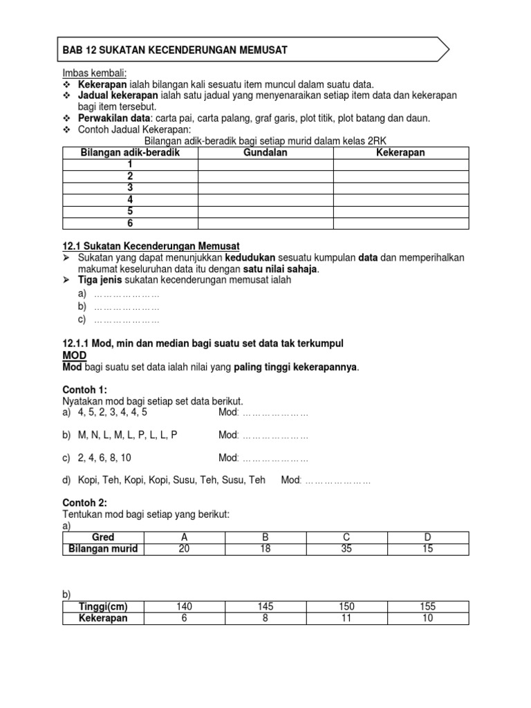 Bab 6 ketaksamaan linear dalam dua pemboleh ubah bab 7 graf gerakan bab 8 sukatan serakan data tak terkumpul bab 9 kebarangkalian peristiwa bergabung bab 10 matematik pengguna pengurusan kewangan nota ringkas dan. Bab 8 graf fungsi bab 9 laju dan pecutan bab 10 kecerunan garis lurus bab 11 transformasi isometri bab 12 sukatan kecenderungan memusat bab 13 … Mod ialah nilai yang paling tinggi kekerapannya. Min dan kelas mod other contents: